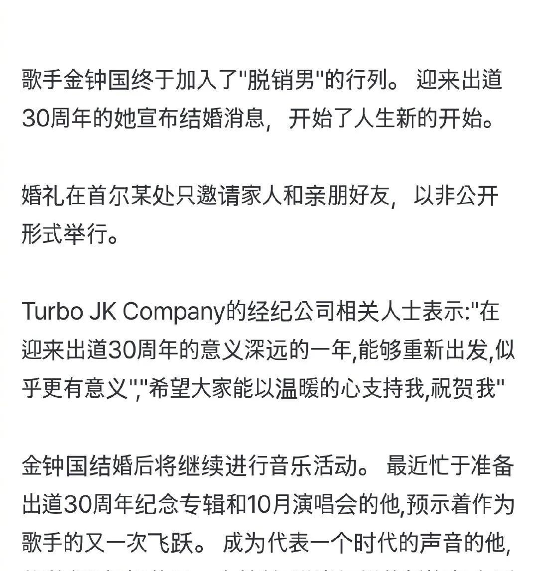 就在刚刚,娱乐圈被一则重磅消息刷屏!金钟国,那个在《Running Man》中以超强体能和真挚性格圈粉无数的“能力者”,在今天的节目录制现场,正式官宣结婚啦! 节目录制开场,现场气氛一如既往地轻松愉快。嘉宾张东润和金雅英正与成员们热络寒暄,金钟国却突然举手,表情略显紧张,犹豫片刻后说道:“我有件重要的事要宣布。” 所有人的目光瞬间聚焦在他身上,紧接着,金钟国深吸一口气,缓缓吐出:“我要结婚了。” 这话一出,现场瞬间凝固,《Running Man》的成员们和嘉宾们满脸写着不可思议,第一反应竟是节目组又在搞 “隐藏摄像机” 整蛊。宋智孝瞪大了眼睛,半开玩笑地说:“国儿,剧本里可没这一出啊!” 刘在石更是不可置信地看向金钟国,反复确认:“真的吗?不是开玩笑?” 当金钟国坚定地点头,微笑着再次肯定时,现场爆发出一阵震耳欲聋的欢呼声和祝福声。成员们纷纷围上前,激动地拥抱金钟国,脸上洋溢着真心的喜悦。Haha兴奋地跳起来,一边喊着 “恭喜”,一边用力拍着金钟国的肩膀;池石镇笑得眼睛眯成了一条缝,送上最真挚的祝福;李光洙则调侃道:“终于把自己嫁出去了啊!” 现场充满了温馨与欢乐 。