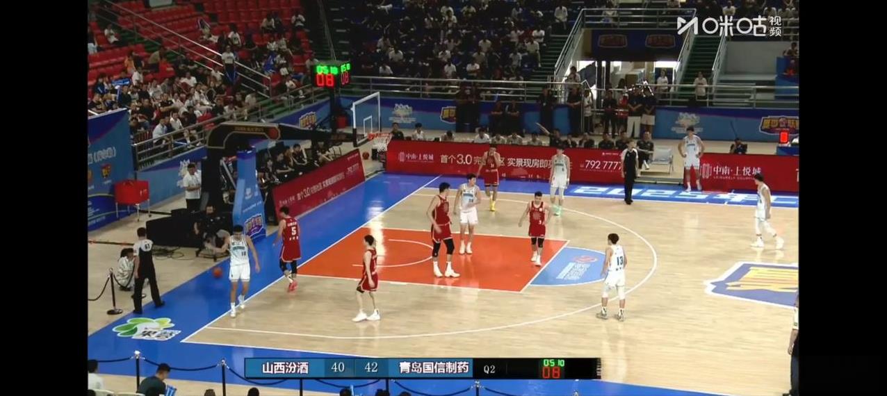 夏季联赛半场结束,山西40-45落后青岛,贾明儒9分,刘传兴5分,于米提8分,韩