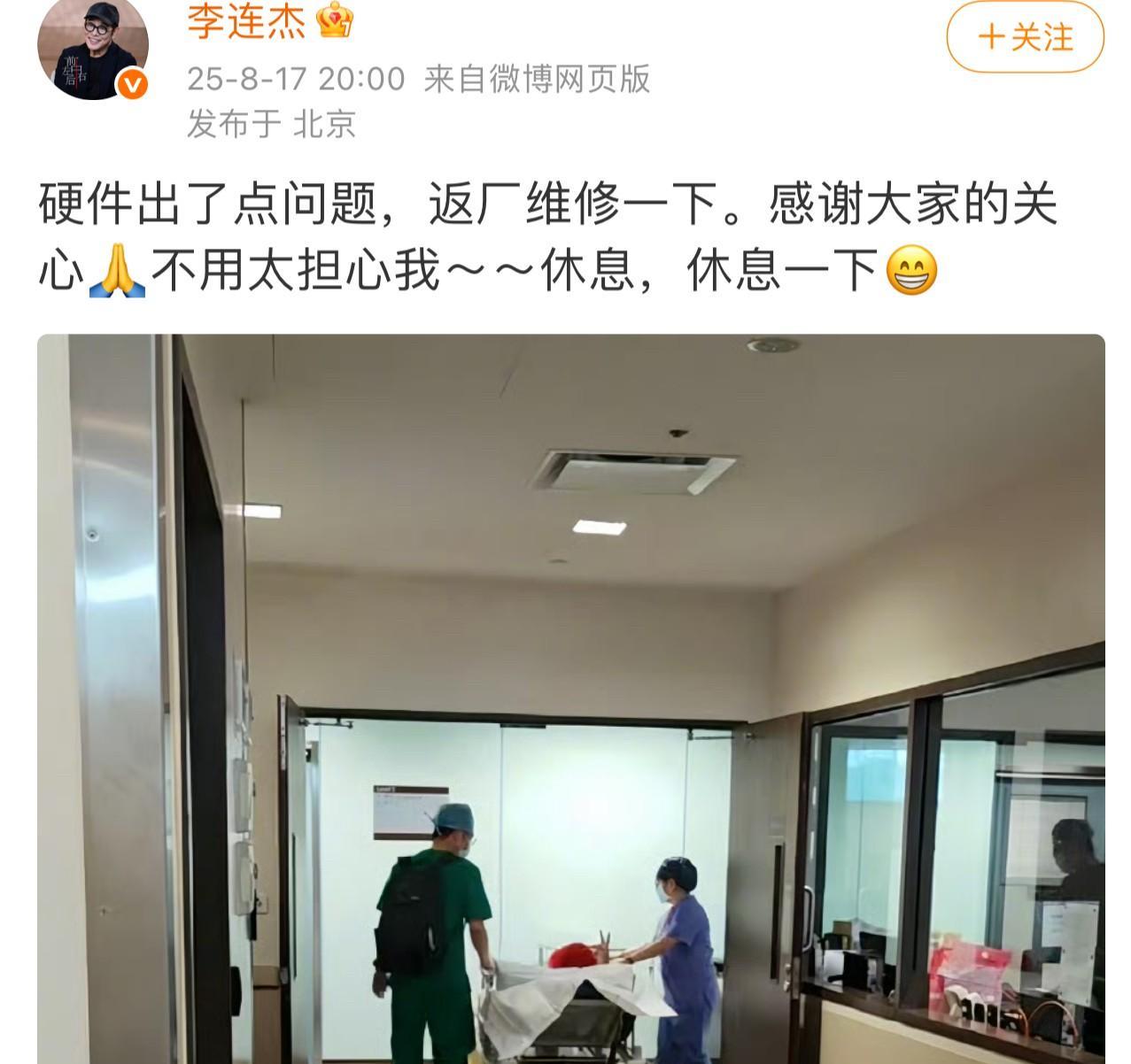 李连杰现在也来这一套了?! 昨晚八点发微博在医院的照片,说硬件出了问题,需要检修