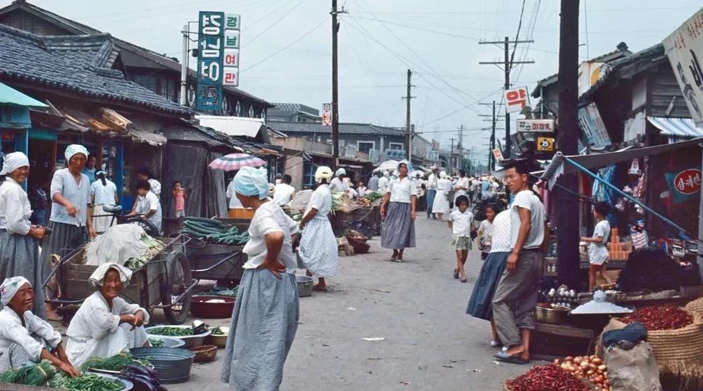 1968年的韩国庆州集市,里面卖西瓜的瓜农。