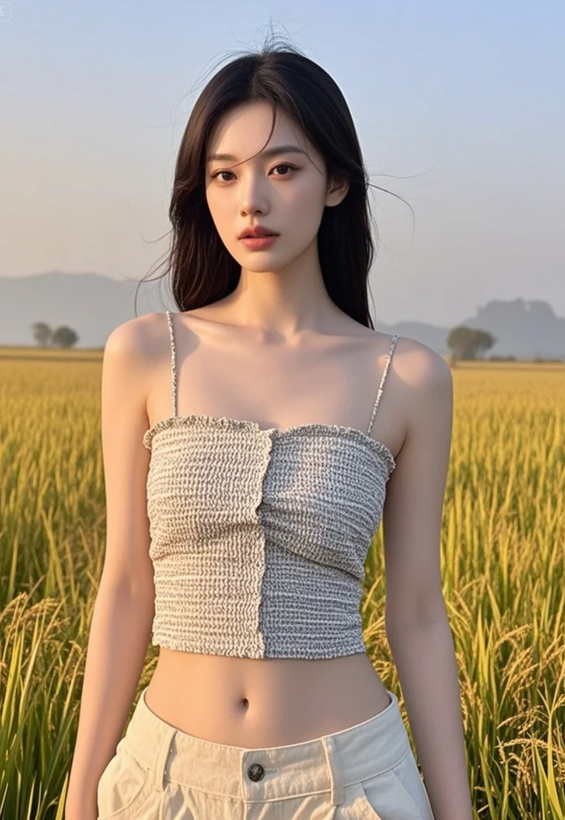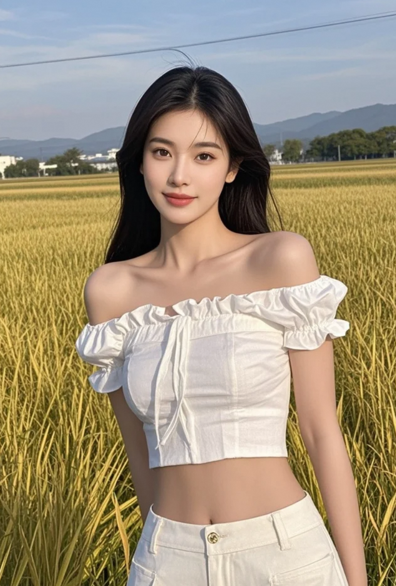 她与稻田同色,仿佛是从秋日画卷中走出的仙子。