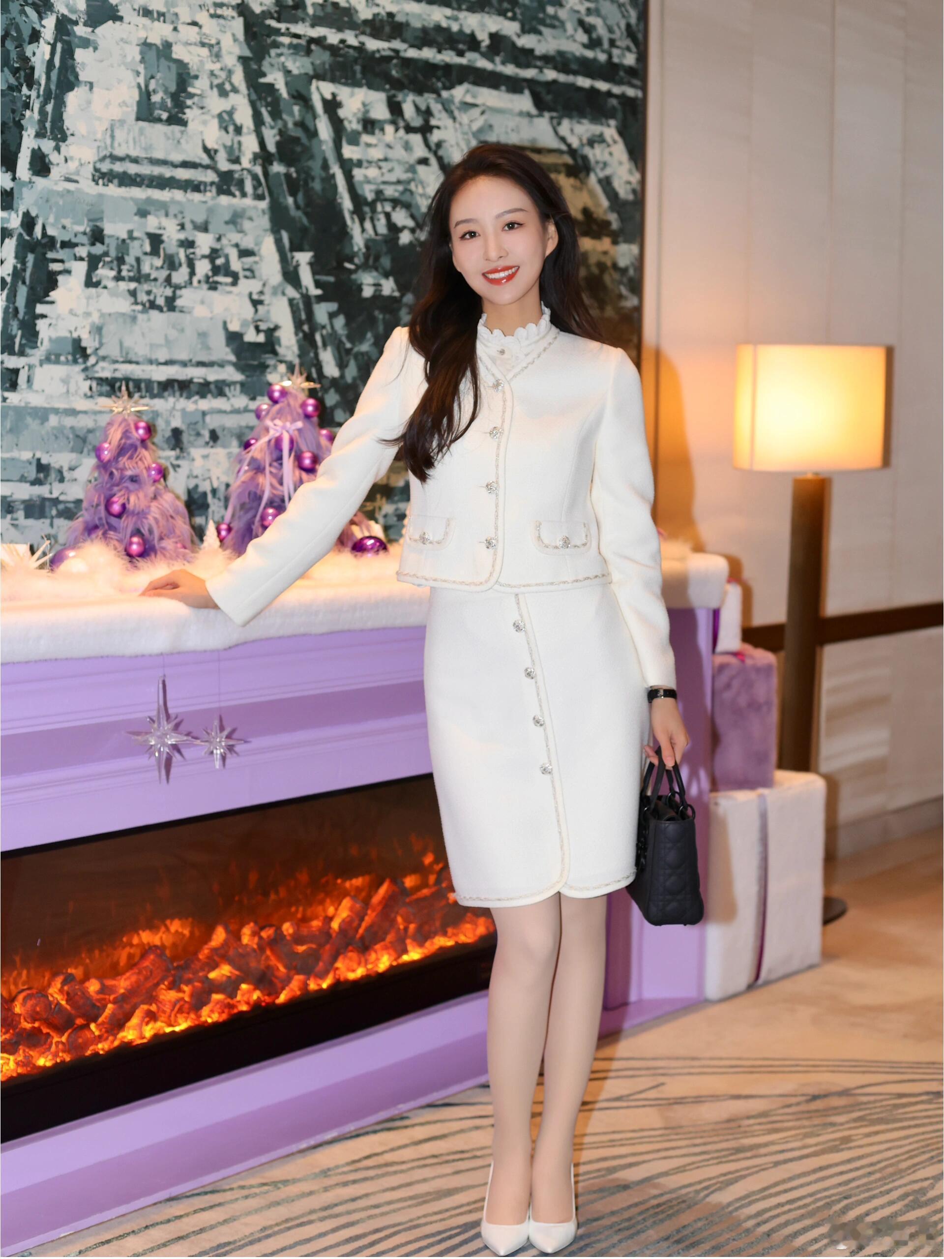 刘璇,主持人风格穿搭,肉丝勾勒柔美线条