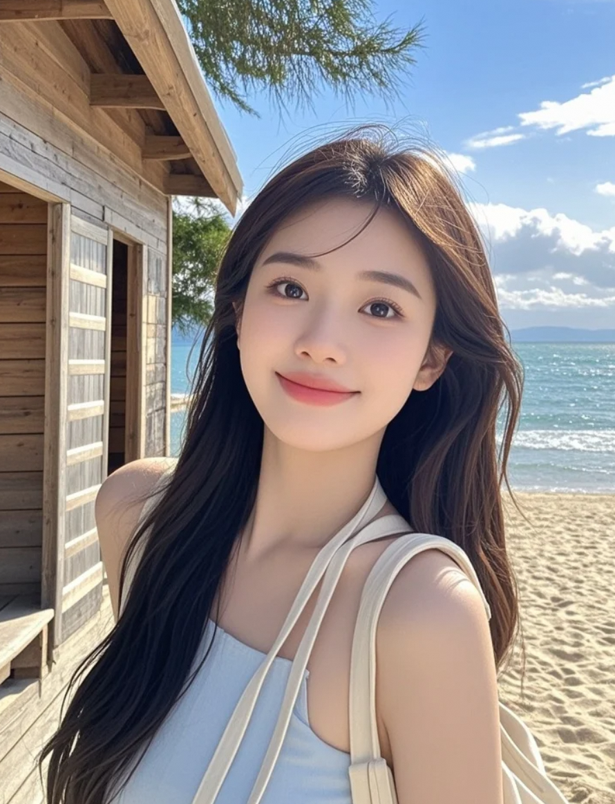 站在浪花边自拍,想不想和我一起吹海风?