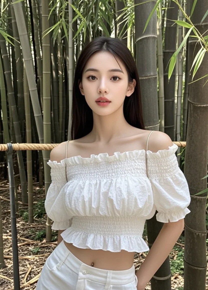 她伸手轻触竹节,指尖流淌着岁月的清寂。