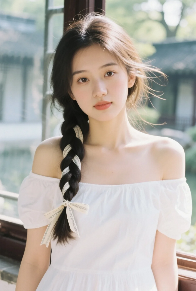 窗边倩影,白色连衣裙下的优雅灵魂