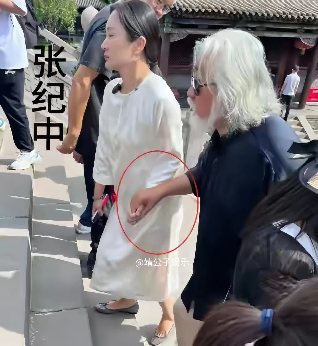 74岁的张纪中在小31岁妻子杜星霖的搀扶下艰难登山,他已满头大汗、气喘吁吁,每走几步路就得停下来歇息。一旁的杜星霖则面无表情,神情淡然,满脸嫌弃,被网友形容为"生无可恋"的模样。