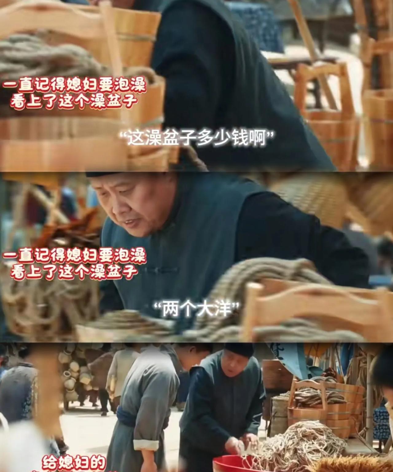 看《生万物》里的物价换算还挺有意思——剧中一头黄牛要价3块大洋,封大角给宁绣绣买的红漆澡盆要2块大洋。按现在的物价算,这澡盆确实不便宜! 结合2025年8月的市场行情,黄牛价格跨度不小:300-500斤的牛犊大概5000-7000元,成年优质黄牛则在8000-12000元。折中取一头黄牛约8000元,对应剧中3块大洋的话,1块大洋大概相当于2667元。 这么算下来,2块大洋的红漆澡盆,按购买力换算就约是5334元,这价格放在现在确实不低。