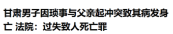 这是个不孝子!”甘肃榆中,男子醉酒后与父亲因琐事发生争执,还当着家人的面扇了父亲的脸,把父亲当场气晕了过去,后经抢救无效死亡。男子虽然后悔无比,但没想到,他还因此被警方认定为犯罪,甚至被检察院提起了公诉。 2025年8月14日,记者从中国裁判文书网获悉,甘肃榆中县法院判决了一起因过失致人死亡的案件,令人十分愤怒! 李某(化名)对自己的生活很不满意,因为他家里就是普通的农民,爹妈都没啥大本事,只能让她他吃饱穿暖,其他物质和经济也帮不上什么忙。而自己因为年少不懂事,早早地就辍学出去打工,但是拼搏了几年还是没有积蓄。 回到老家后,因为没有学历没有人脉,所以也没找到啥正经工作,看着自己朋友都买车买房结婚的,他眼看自己年纪也不小了,可是自己没钱没房还没媳妇,父母年龄也大了,干不了啥工作,就只能勉强贴补家用。 他自己陷入了迷茫,觉得自己一事无成,朋友们也都看不起他。所以每天借酒消愁,觉得自己喝多了啥也不用想就能睡着觉,丝毫没有考虑过自己的问题。 事发当天,他和朋友又喝的醉醺醺的回到家,正好父亲起床上洗手间,看到自己儿子踉踉跄跄还带着酒气的回到家。父亲心里心疼儿子每天这样,于是就说让他不要一直喝酒,喝酒解决不了问题,还说会帮他托人找关系找份好工作,还会找人给他说个媳妇。可喝多的李某却口不择言起来。 他把他生活上一切的不顺心全部怪罪于自己父亲身上,他觉得自己父亲如果有本事,自己就不会过得这么苦,在朋友面前抬不起来头,这么大年纪还找不到对象,他说就是因为自己父母没本事!这话让父亲十分心寒,俩人你一句我一句的争吵起来。 因为李某说话实在可恶,父亲忍无可忍给了李某一巴掌,想让他清醒点。可令父亲万万没想到,自己亲生儿子居然敢殴打自己!父亲打过李某之后,李某直接怒不可遏,攥紧了拳头狠狠地朝父亲头部和面部砸去! 家里人看到这一幕,赶紧将两人拉开,拉开后,父亲因为太过于生气,再加上被殴打,竟然直接倒地不起!这一幕把李某也吓着了,自己没想到父亲竟然会这样,于是赶紧打了急救电话,救护车来了以后,发现父亲已经没有了呼吸,直接当场死亡了! 死亡原因是李某的暴力行为,导致父亲血压升高然后引起心脏病而猝死!李某万万没有想到,自己一次冲动的行为,竟然导致父亲死亡,可他此时后悔也来不及了!