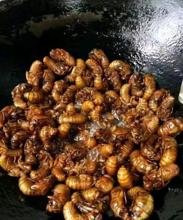 真想不到,知了猴这么值钱,群里有位姐姐说,一瓶大约100个,80元一瓶! 如果颜色发绿,则50一瓶,多要还可以送货上门。 这东西油炸后,确实是道美味的下酒菜。 只是不知道它到底是益虫还是害虫,为何产量那么高。