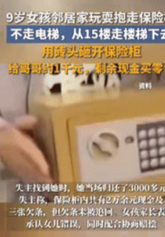 “胆子真大!”河南郑州,一9岁女孩到邻居家玩耍,趁人不备,把客厅内的小型保险柜抱走,不走电梯,从15楼走楼梯下去,用砖头砸开保险柜后,给哥哥分了约1000元,剩余现金用来买零食,而最后的结果,让人意外,网友:小时偷针,大时偷金! "这么小就知道偷东西,如果不加以管教今后还不知道惹出什么事情!"邻居愤怒地说道,谁能想到,这句充满担忧的话竟源于一起令人瞠目结舌的盗窃案——作案者竟是一个年仅9岁的小女孩。 据荆楚网8月18日报道,事情发生在河南郑州某小区,这天9岁的小女孩像往常一样到邻居家玩耍,谁也没料到,这个看似天真的孩子心中早已盘算着惊人的计划,趁邻居转身忙碌的间隙,她迅速抱起客厅内的小型保险柜,毫不犹豫地转身离开。 更令人震惊的是她的作案手法,这个9岁的孩子没有选择便捷的电梯,而是硬生生扛着保险柜从15楼走步梯下楼,邻居事后调取监控才发现,小女孩全程表现出与年龄不符的沉稳,一步步将沉重的保险柜搬下楼梯,整个过程竟无人察觉。 得手后小女孩迅速处理赃物,她找来砖头,用最原始的方式砸开保险柜,将里面的现金据为己有,据查她给哥哥分了约1000元,剩余的钱则全部用来购买零食,邻居发现保险柜失踪后立即报警,通过监控锁定嫌疑人,当找到小女孩时钱款已被挥霍一空。 这起案件在当地引发轩然大波,人们难以理解,一个9岁孩子为何会有如此缜密的作案思路和超乎常人的体力,更令人忧心的是,她在整个过程中表现出的冷静与老练,完全不像这个年龄段应有的行为模式。 邻居找到了女孩家长,对方很震惊,为让邻居消消气,女孩家长愿意把钱全部给他补上,钱能补,但柜里还有欠条呢。 事件曝光后网友们的评论发人深省,有网友指出:"这已经不是简单的顽皮,而是明确的盗窃行为,家长必须正视问题的严重性,及时干预引导,否则将来可能酿成大祸。" 另一位网友则表示:"从心理学角度看,孩子出现这种行为往往与家庭教育缺失有关,家长应该反思,是否在日常生活中忽视了孩子的道德教育和行为规范。" 这起案件不仅是一个个案,更折射出儿童教育和家庭监护的深层问题,专家提醒,对于孩子的异常行为,家长和社会都应保持警惕,及时介入,用正确的方式引导孩子树立正确的价值。 对此你怎么看?欢迎大家在评论区留言讨论。