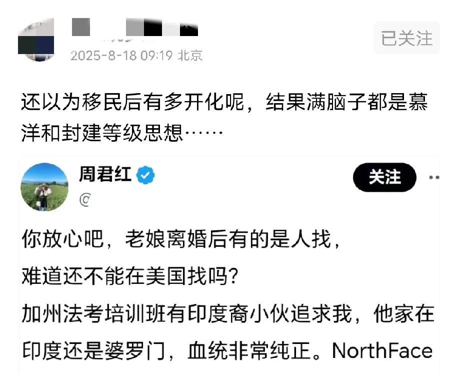 幸亏这种律师在国内没有生存空间,润美国去了,不敢想这种人在国内当律师或者法律工作者,是多么恐怖的事情,应该跟那个诬告女的律师差不多,这人在国内嘴里都高喊“文明法治”,结果去到美国,炫耀印度的高种姓和白人追它,其实这些所谓追求民主自由公知,脑子里最封建了!