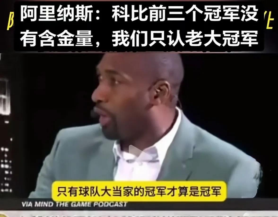 阿里纳斯:科比前三冠没含金量,我们只认老大冠军!没人把这把他的三个冠军戒指当回事儿!我们讨论的是前10历史地位!不是拿二当家的冠军来凑数的!这样的话皮蓬也更应该考虑前10!科比拿来讨论前10是因为后两冠而皮蓬没有!所以只有大当家的冠军才能讨论历史地位! 网友:那库里“老大冠军”从何说起?