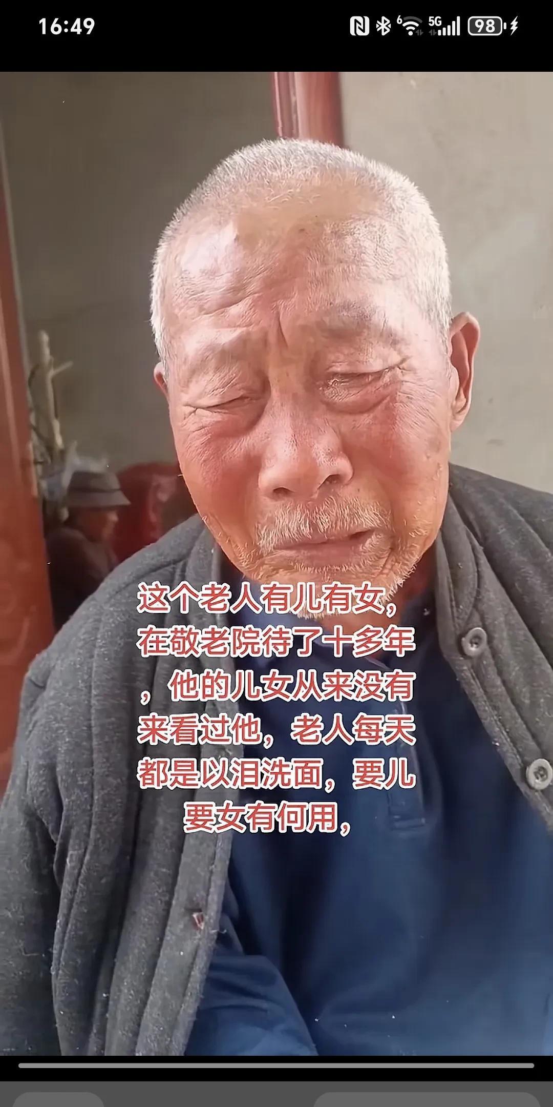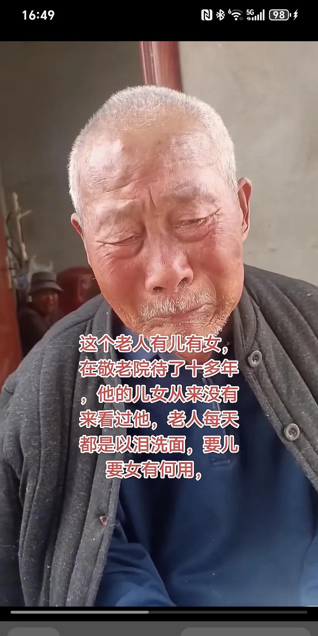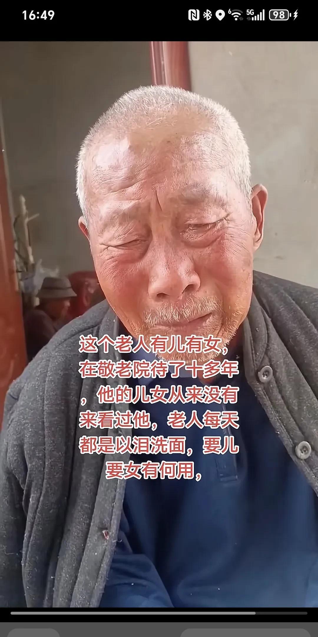 这个老人有儿有女,在敬老院待了十多年,他的儿女从来没有来看过他,老人每天都是一泪