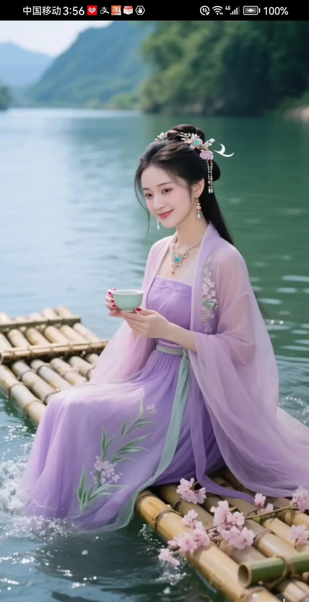 #美女美景诗词分享##头号创作者激励计划# <浣溪沙·溪畔品茗>/马进鹏 粉袂轻飘坐竹排,春溪如镜映仙才。茶香漫与落花猜。 云影徘徊山作伴,风姿绰约韵盈怀。愿同清景共悠哉。