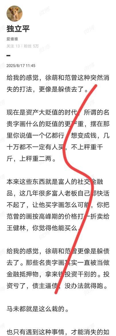 一个老子出关让范曾吃一辈子,还会让后面的几辈子子子孙孙都会衣食无忧。 什么流水线作画啊,什么没有艺术品味啊,这些都不重要。 重要的是真金白银的已经销售了几十个亿。 所以网上有一个人说范曾的作品就是金融工具,这明显有羡慕嫉妒的成分[笑哭][笑哭]