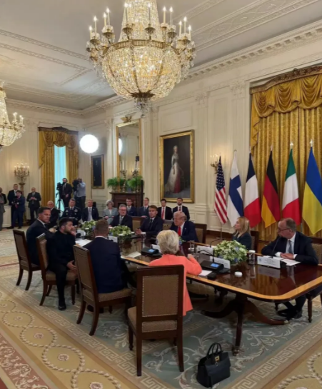 俄:看把他急的! 美乌欧白宫会,中途,特朗普就和普京通话了40分钟。他们谈了什么?俄总统助理乌沙科夫发布说,特朗普向普京通报了与乌克兰总统泽连斯基以及欧洲领导人的会晤情况。原来,白宫谈出个意思,就是泽连斯基要求和普京直接谈。当然,特朗普乐观其成,普京闻言,更是喜不自胜。这样在战场形势利好俄方的状况下,更有时空回旋余地。特朗普希望俄乌提升直接谈判代表级别,最好普京和泽连斯基直接谈,这样他也可以名正言顺参与进来。普京当然不反对特朗普。白宫会后,特朗普宣布要美俄乌三方峰会,认为“对这场已持续近四年的冲突的一个非常好的早期步骤”。 同学们,就在白宫,特朗普对着欧方领导人兴奋地说,他已经叫停了6场冲突,俄乌战争熄火也有眉目了。美媒认为这是暗示欧方应该知道2026诺贝尔和平奖的安排了。更多细节显示,虽然德国总理墨茨想帮腔泽连斯基,结果一句话还没有到句号,就被特朗普堵了回去。坐在特朗普一左一右的法国总统马克龙笑着看着特朗普,一言不发。意大利总理梅洛尼更是对特朗普醉眼朦胧。冯德莱恩女士刚说什么乌克兰安全的事,特朗普打断她说,我们都有不一样的目的,不久前谈得很好嘛!直接让欧方回想一下被欧洲人痛骂“卖主求荣”的美欧贸易协议。 划重点:为泽连斯基想条出路。
