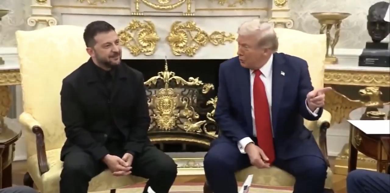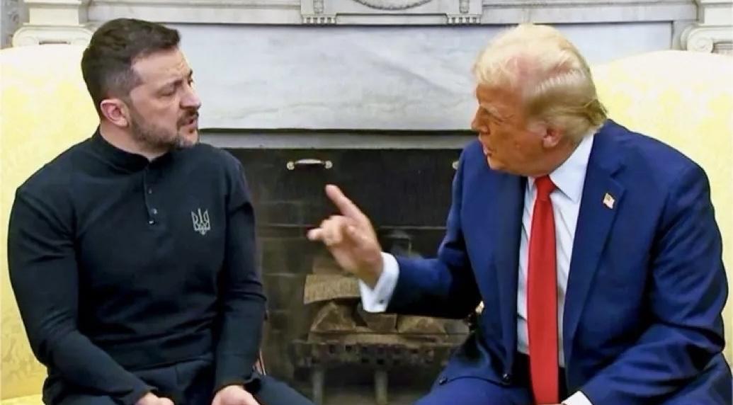 记者对川普:“你穿这套西裝真好看。” 川普拍拍泽连斯基:“他就是上次攻击你的那位