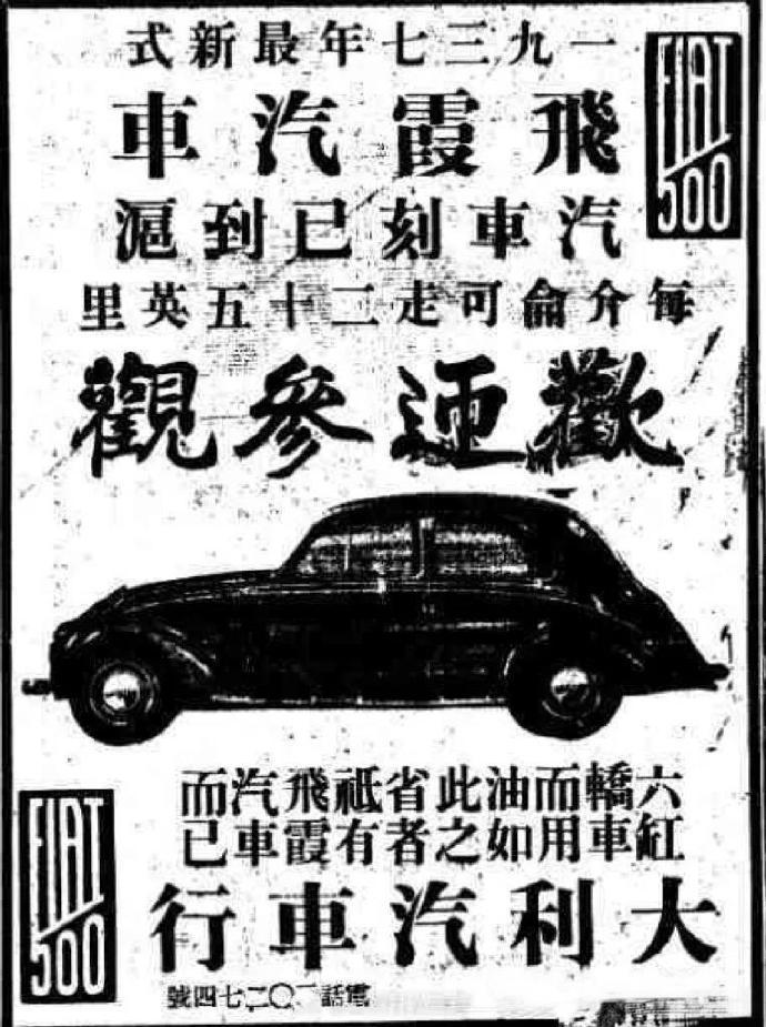 1937年年初,大上海汽车广告。飞霞汽车,六缸省油,不知道是哪国生产的?[抠鼻]