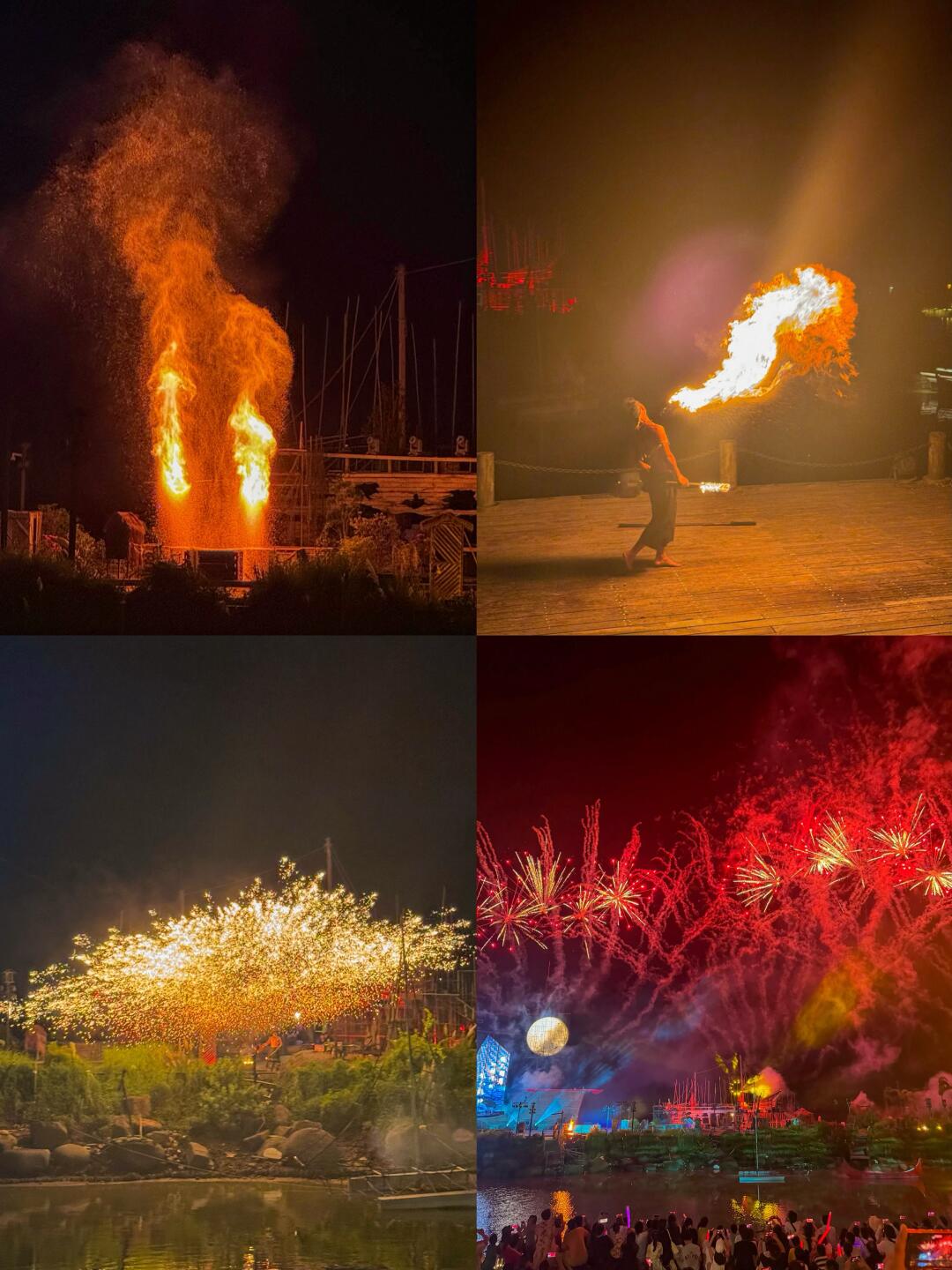非遗打铁花和烟花秀一起炸场时,