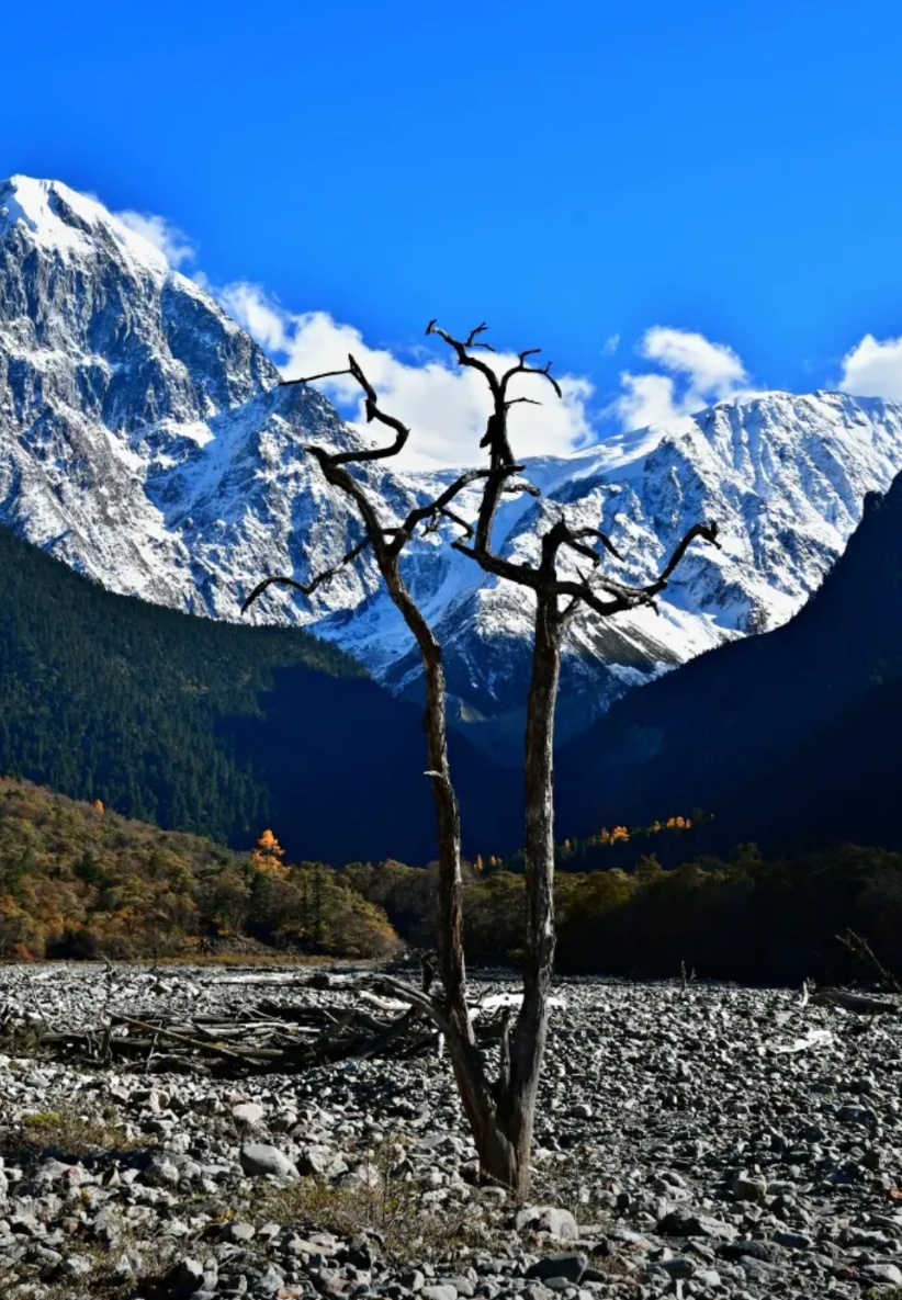 其中主峰卡瓦博峰直插云霄,洁白的雪峰,在湛蓝的天空下,气势磅礴,庄严肃穆。