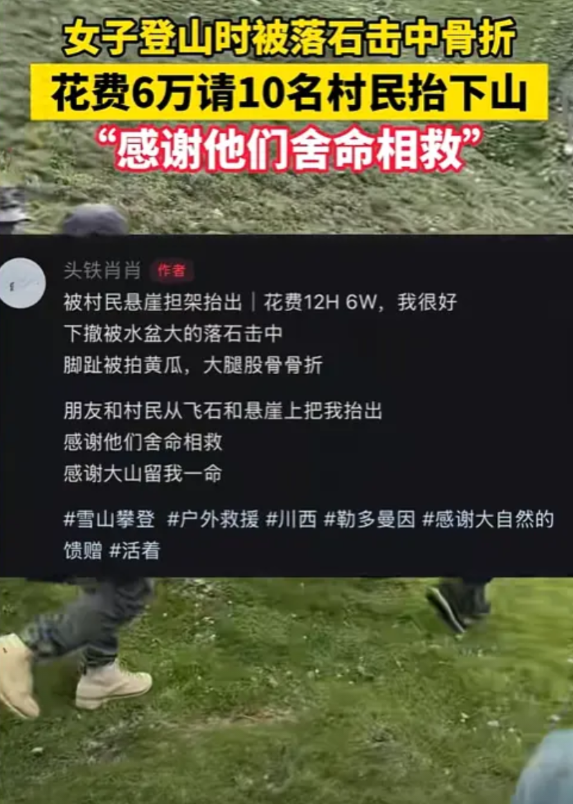 “坐地起价?”四川,女生登山时,不慎被落石击中,导致脚趾粉碎性骨折,大腿股骨断裂