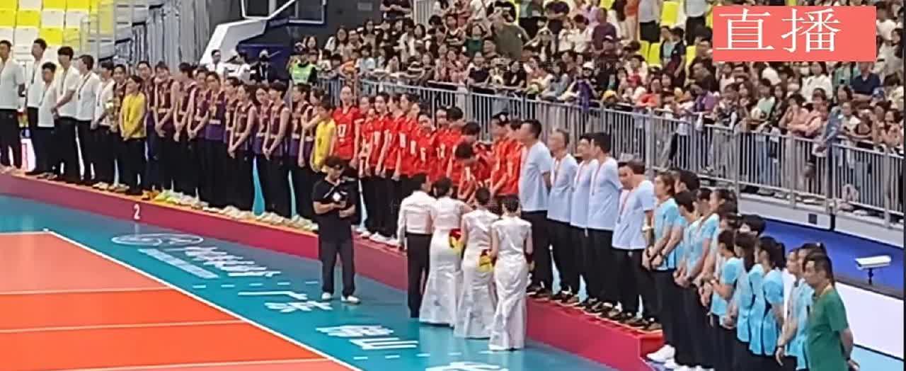 全锦赛女排颁奖仪式秩序井然 2025年全国女排锦标赛落幕,前三名球队依次是:上海光明优倍女排;山东日照钢铁女排、天津渤海银行女排,赛后举行了颁奖仪式。组委会鉴于上届全锦赛颁奖典礼上的乱象,这次专门为每支获奖的球队配了一名礼仪小姐。 颁奖仪式开始前,三支获奖球队分别在礼仪小姐的引导下,站在了自己应该站的位置上。颁奖典礼结束后,三支获奖球队和颁奖嘉宾一起,拍了一张大合影。