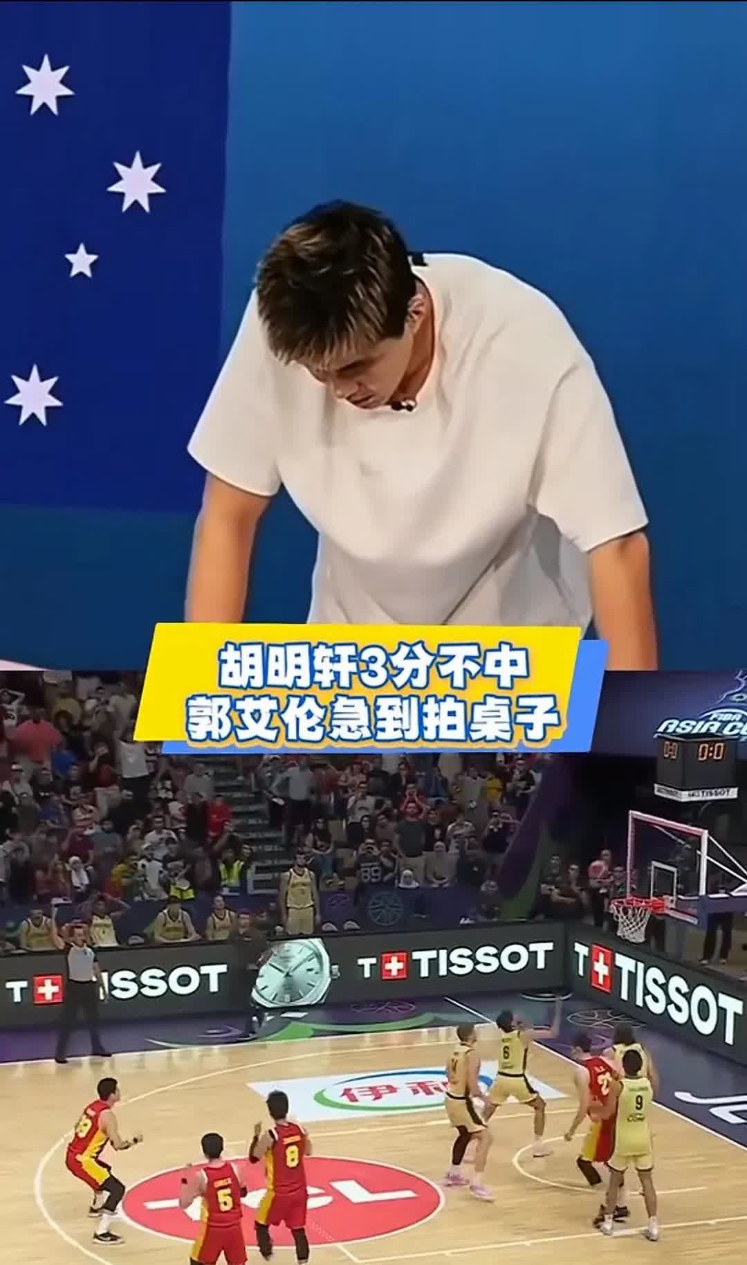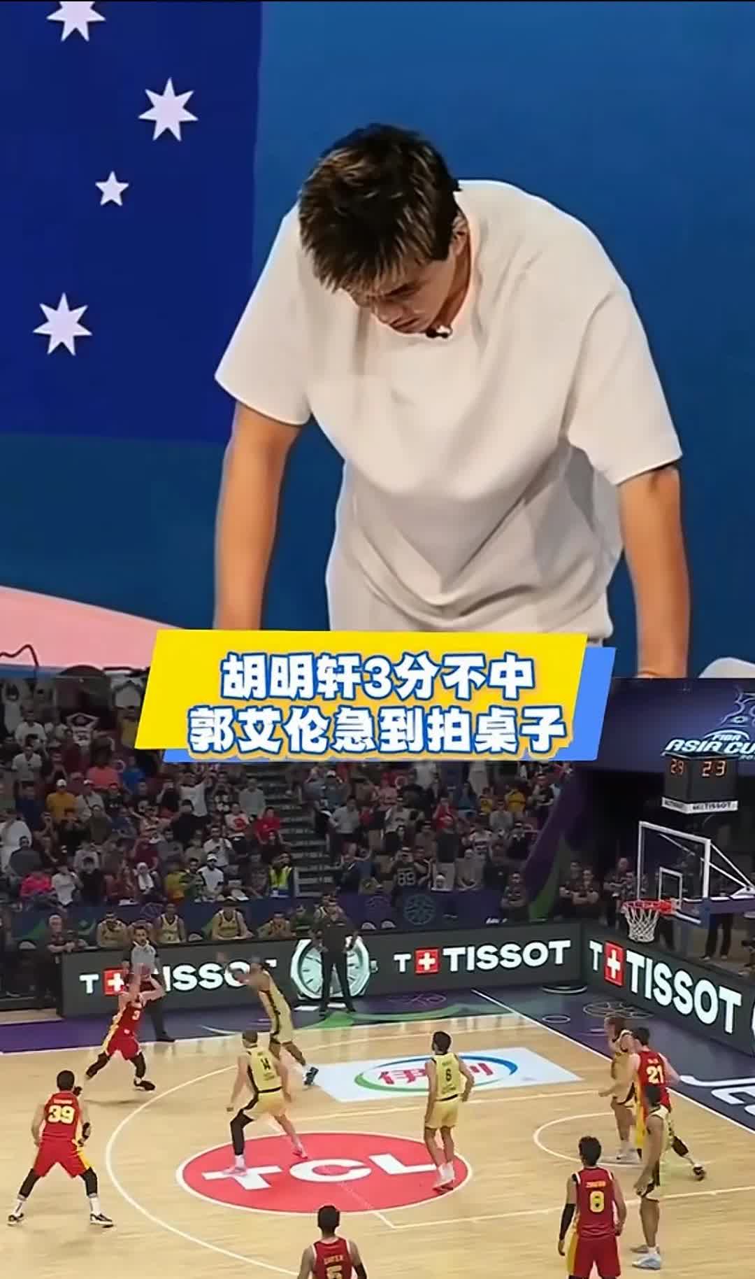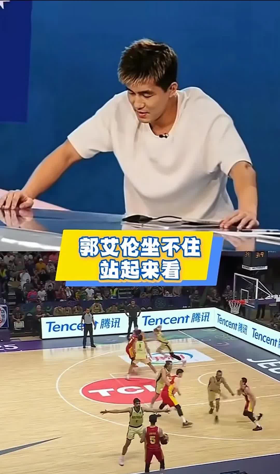 郭艾伦解说亚洲杯决赛,中国VS澳大利亚。 最后3.9秒,澳大利亚领先1分。郭艾伦实在坐不住这解说席了,站起来看。最后胡明轩3分不中,郭艾伦急的拍桌子。 郭艾伦真是个急性子,恨不得自己就要上场了。[捂脸][捂脸] 是真的希望中国男篮能够赢![笑哭][笑哭]