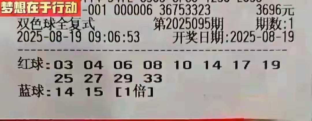 双色球25095期开奖结果,8注一等奖736万元,二等奖78注30万元