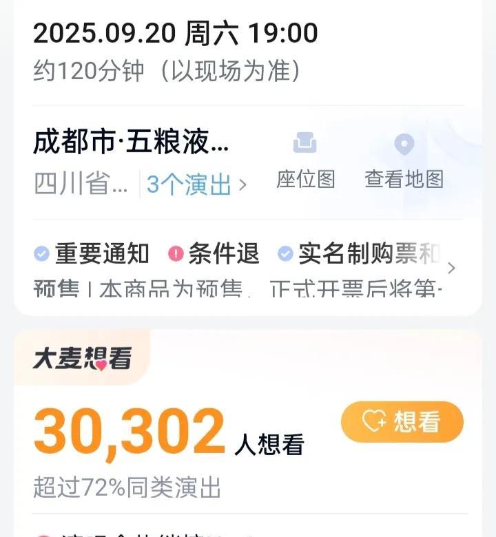 网传岳云鹏成都演唱会9月20日在成都五粮液文化体育中心综合体育馆举办,这是岳云鹏7月26、27日北京演唱会后的第三场演唱会,也是他巡回演唱会的第二站。 大麦网显示成都演唱会门票是380~1580元,想看演唱会人数30302人。看来岳云鹏的人气不输于北京演唱会。 这次不同的是网上黑岳云鹏成都演唱会的黑子们少了,原因可能是离演唱会时间尚早,还是黑的有点累了,再有没有什么新东西黑,用老一套自感枯燥无味。还是觉得德云社这棵树太大了 撼 也撼不动。 岳云鹏为什么有那么大的底气开演唱会,原因是有德云社的强大支持。在市场经济下的今天企业拼的是实力,有的人很想出国巡演,说了好几年了为什么不能成行,原因是你实力不行主办方怕赔钱。