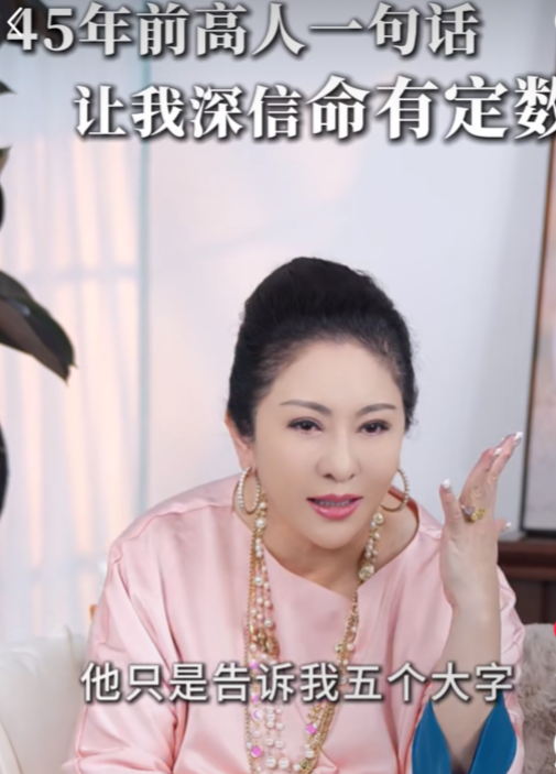 昨晚,在直播间,向太分享了一段经历。她表示,年轻时自己从不相信命运的安排,但45年前在台湾遇到了一位高人,那位高人送给她五个字,令她彻底改变了对人生的看法。从那一刻起,她意识到,人生的命运早已注定。