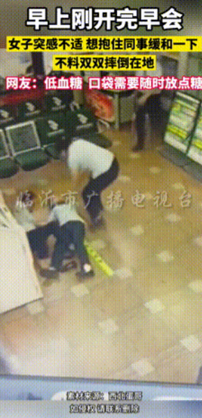 差点就出事儿了!”陕西,一女子和同事闲聊期间,对方突然身子一弯,立马抱住女子的大腿,随后两个人都被绊倒在地!生气的女子刚想发飙,却看到同事已经昏倒,这才发现对方犯低血糖了!幸好她抱了一下,要不然同事就得后脑勺磕地了!网友:原来低血糖这么可怕! 8月15日的早上,陕西某写字楼里刚结束例会的办公室一片忙碌,此时女子正和同事站在一起聊天,可聊着聊着,其中同事就突然摇摇晃晃,随后一双冰凉的手就死死抱住了她的大腿。 很快两人一起摔倒在地,可就在女子正要发火时,抬头却看到同事脸色煞白,嘴唇发青,整个人像抽了骨头似的瘫软着。 办公室瞬间炸开了锅,有人冲去倒糖水,有人赶紧拨开同事的眼皮查看瞳孔,原来同事早上赶着开会没吃早饭,会议中途就开始冒冷汗、手抖,到散会时终于抵不住了,随后医生表示,要不是她摔倒前本能地抓住同事,要不然脑部还得受到重创。 这种突如其来的低血糖发作比想象中更危险,很多人以为就是头晕吃点糖就好,实际上严重时会出现意识模糊、抽搐甚至昏迷,等出现心慌、手抖、出冷汗这些信号时就要立即处理,等晕倒就晚了。 现在很多上班族早上为了多睡会儿省掉早餐,或者为了减肥刻意节食,殊不知空腹工作的危害极大,所以工作再忙,也得抽出时间吃饭。 评论区聊聊,你有过低血糖的经历吗?最后是怎么缓过来的?