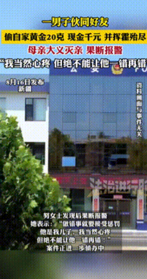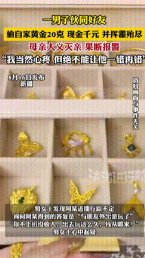 这就叫大义灭亲!”新疆,一女子的店铺营业一整天,可到下班清点数目时,却发现亏损了1000元,而且盒子里的20克黄金也不凭空消失了!女子在调查后,却发现是儿子监守自盗,可她并没有纵容,而是报警处理,随后的一番话更是让人泪目!网友:做得到,惯子如同杀子! 新疆一位经营小店的努女士正面临了人生最艰难的决定,那天晚上打烊后,她像往常一样清点当天的收入,却发现装钱的铁盒明显被人动过,不仅少了1000元现金,更让她心惊的是,珍藏多年的20克金首饰也不翼而飞。 努女士第一时间想到的是儿子,因为最近几个月,22岁的儿子经常夜不归宿,每次问起都说和朋友在一起,更可疑的是,明明没有工作收入,却总能看到他买新手机、请朋友吃饭。 经过再三追问,儿子终于承认是他偷走了家里的财物,更让人痛心的是,这已经不是第一次,他曾经和三个朋友合伙作案,分两次把家里的黄金和现金偷走变卖,钱早就挥霍一空。 面对儿子的坦白,努女士经历了整夜的辗转反侧,第二天一早,她做出了让所有人都意外的决定,那就是直接报警,随后她红着眼睛对民警说:“我心疼他,但我不能看着他继续错下去。”这句话背后,是一个母亲撕心裂肺的痛与爱。 这件事在网上引发热议,很多网友为努女士点赞,认为她用实际行动诠释了爱之深,责之切的道理,但也有人质疑:毕竟是亲生儿子,这样做会不会太绝情? 其实在法律层面,亲属间的盗窃案件确实存在特殊性,如果获得家人谅解,犯罪嫌疑人往往可以获得从轻处理,但努女士坚持要让儿子承担后果,就是希望给他一个深刻的教训。 有些父母发现孩子犯错后选择包庇纵容,结果让孩子一条道走到黑,努女士的选择虽然看似残酷,却可能是最负责任的做法,哪怕这样会让孩子暂时怨恨自己。 评论区聊聊,如果你是努女士,会做出同样的选择吗?