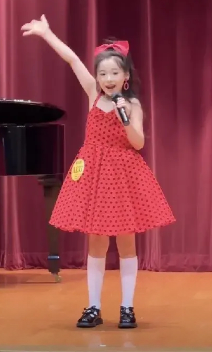 难怪佟丽娅那么喜欢小酒窝!小酒窝参加香港国际声乐公开赛!穿着红色小裙子,扎着红色蝴蝶结的她看上去非常可爱!不仅如此,她太有舞台表现力了,唱的是中文歌曲,一边唱一边表演。非常自然!