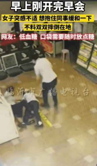 “太惊险了!”8月15日,陕西,女子早上开完早会,刚走出门,突然被同事狠狠抱住!她还来不及反应,就被同事一起拉着,双双摔倒在地,她起初以为是同事开玩笑,回头一看,却见同事双手一摊,没了反应,这才意识到她是犯低血糖了!网友:低血糖,口袋需要随时放点糖! 在陕西的一间办公室里,早会刚结束,同事们陆续散去。