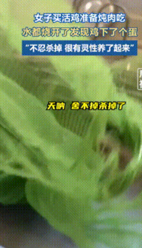 万物皆有灵!”江西鹰潭,一女子买了只活鸡打算炖汤喝,没成想水都烧开了,却忽然鸡突