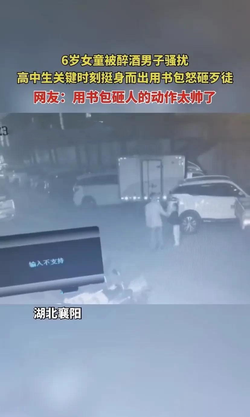 湖北襄阳,一名6岁女孩走在回家的路上。可是没想到,突然出现一名醉汉,将她强行拖至汽车后面准备进行骚扰,女孩的母亲赶到,却被推倒在地。这时,一名放学的高中生路过,直接用书包砸向醉汉,随即女孩的家人和高中生一起将醉汉制 服。 这天晚上,女孩和母亲还有阿姨一起出来散步。