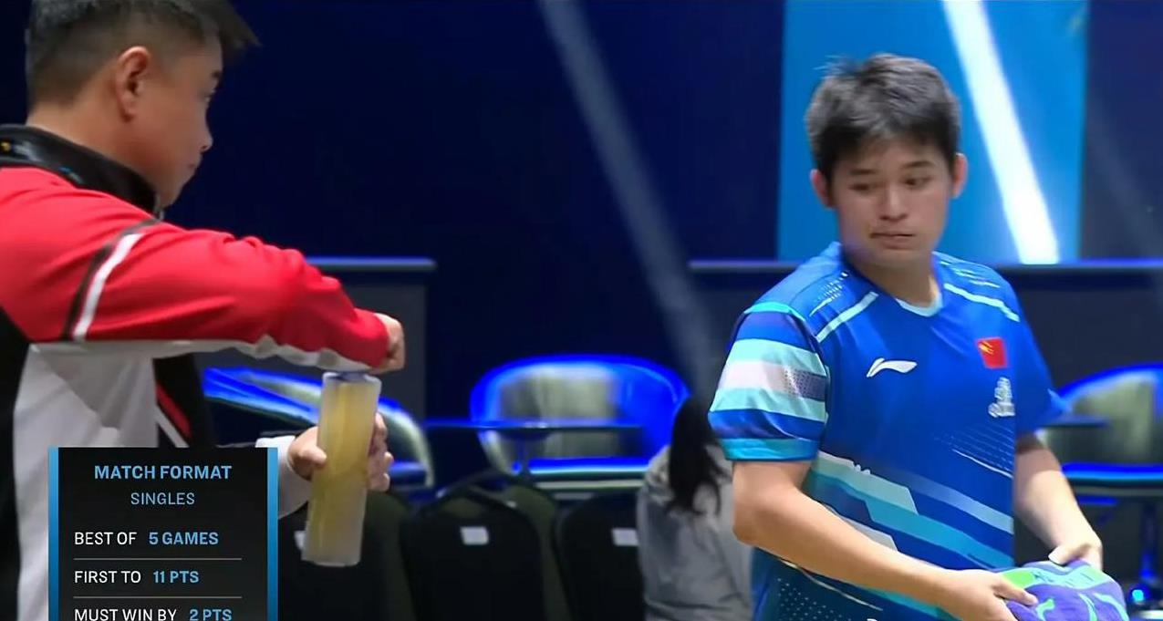国乒男队其他选手和教练们都在看台观赛! 目前第三局石头3-4阿萨尔,阿萨尔叫了暂停。 阿萨尔没有场边指导,自己叫的暂停,他身材高大,在场上像个张开翅膀的老鹰,挺可怕的。 这会儿第三局石头打到了9-7! 石头加油!