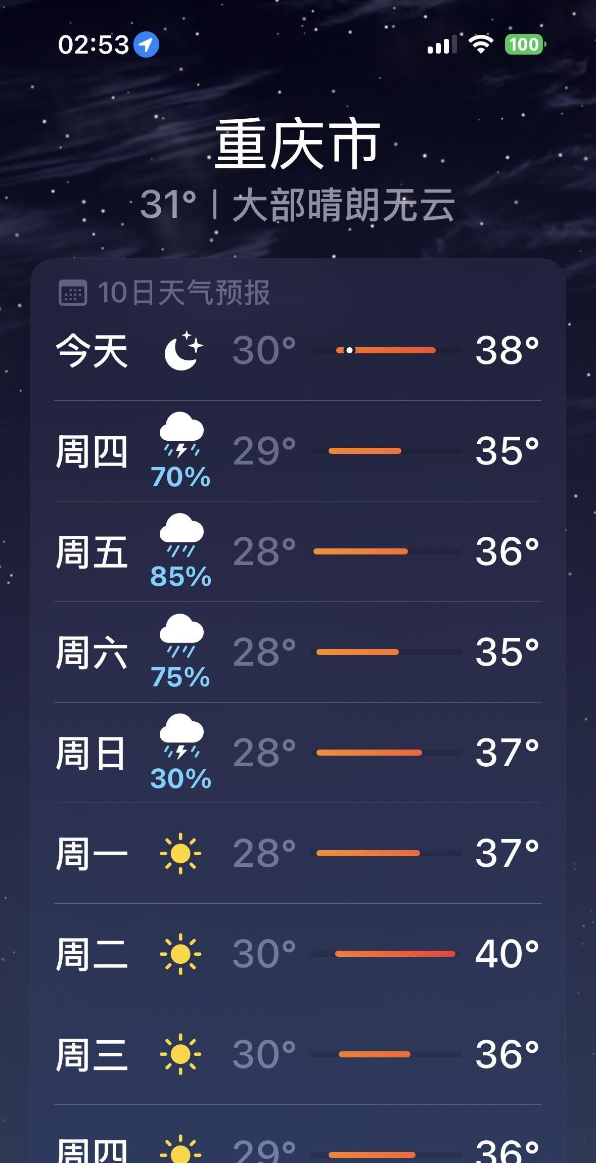 2个坏消息!完蛋了!干爽的重庆主城区,即将迎来潮湿的闷热桑拿天!8月21日到23日,重庆主城区,小雨,最高气温33度35度到37度……我的个天啊!这岂不是要了我的命啊!小雨,潮湿,闷热,桑拿天,我好拍怕啊! 其实,最近几天重庆主城区,虽然大太阳暴晒,但是比较干爽,因此没有热气和热浪,傍晚和晚上,在北滨路、南滨路、洪崖洞、重庆大剧院江滩,一点也不热! 可是,这周末,重庆要迎来潮湿的闷热桑拿天了! 不仅仅如此!8月24日到31日,重庆主城区,将会迎来新一轮持续高温,最高气温40度! 8月27日和28日,重庆主城区,40度高温! 我打算8月25日星期一,逃离重庆主城区! 8月25日到28日,我是真的好想好想逃离重庆主城区啊! 哎!如果说还有第三个坏消息,那就是,9月1日和2日,重庆主城区,可能会是35度36度高温的闷热桑拿天……超级计算机啊,我希望你预测错了啊!#光线摄影世界曾兰谈天说地# #头号创作者激励计划#