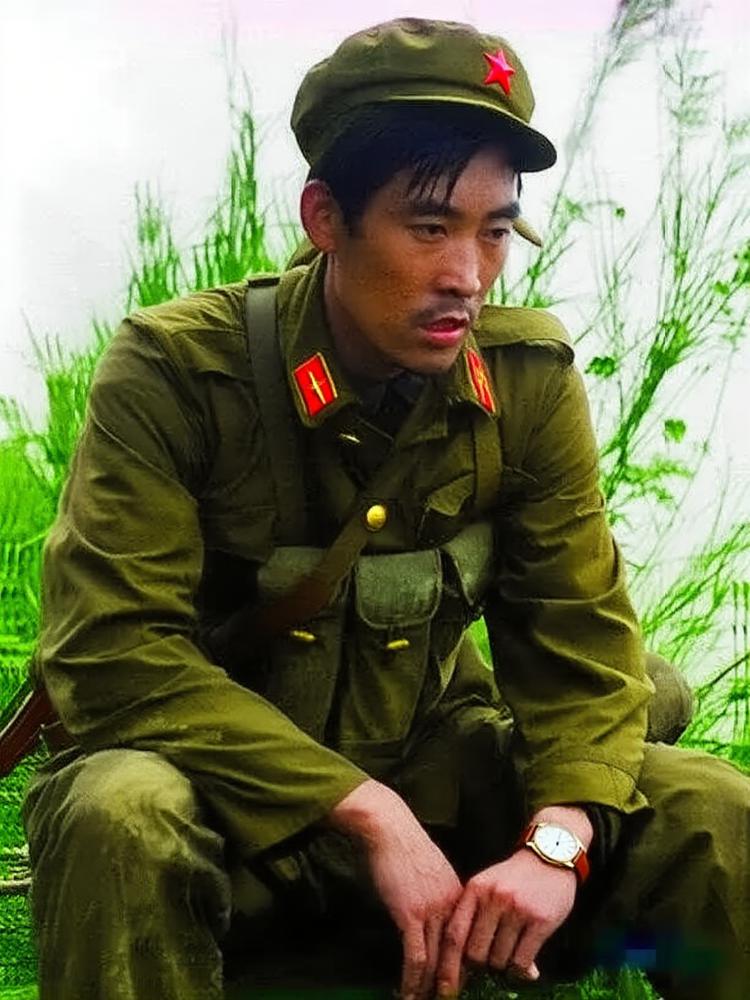 照片里这个看起来特别疲惫的战士叫邱枢,刚打完仗。他是老山战役里第十五侦察大队的连长,1988年带着全连跑到敌人后面去,近距离侦察,收集重要情报,一共消灭了65个敌人,打伤13个,还俘虏了3个,可厉害了。