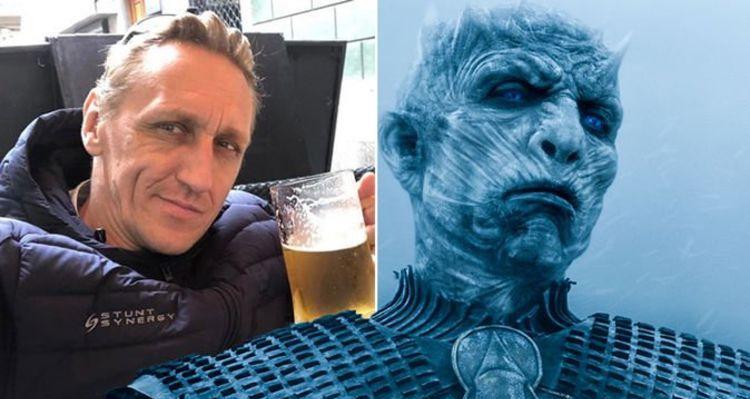 “权游”幕后,众人愉快的和夜王合影。 在剧集里,“夜王”由斯洛伐克演员弗拉基米尔·弗多·弗迪克饰演。从《权力的游戏 第六季》开始,他就一直饰演夜王,同时他也担任“权游”剧组里的特技演员。实际上他原本就是特技演员出身,从90年代开始,他就在好莱坞的各类低成本电影里出任特技演员,并在“权游”剧组工作时获得了出演大反派夜王的机会。