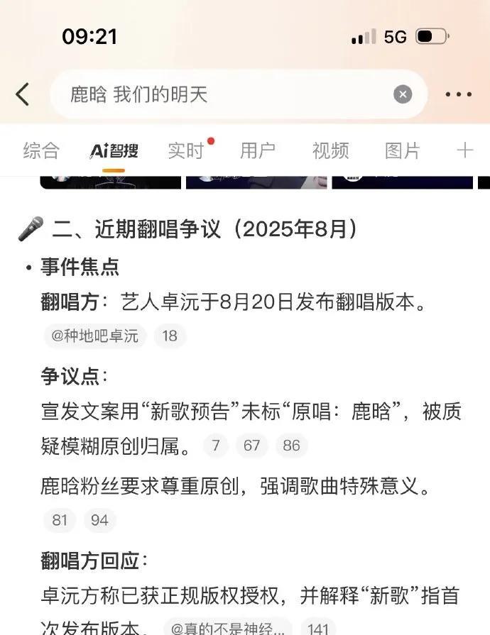 卓沅翻唱《我们的明天》,粉丝团文案标成“新歌”没提原唱鹿晗,引来小争议。还好他很快发文感谢鹿晗授权,特意标了原唱。版权早沟通好,就是宣发差点意思,这下清爽了,能好好听两个版本了~