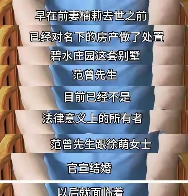 据说,范曾和徐萌结婚时,已签了财产协议,范曾结婚前个人财产,包括字画、古董、存款