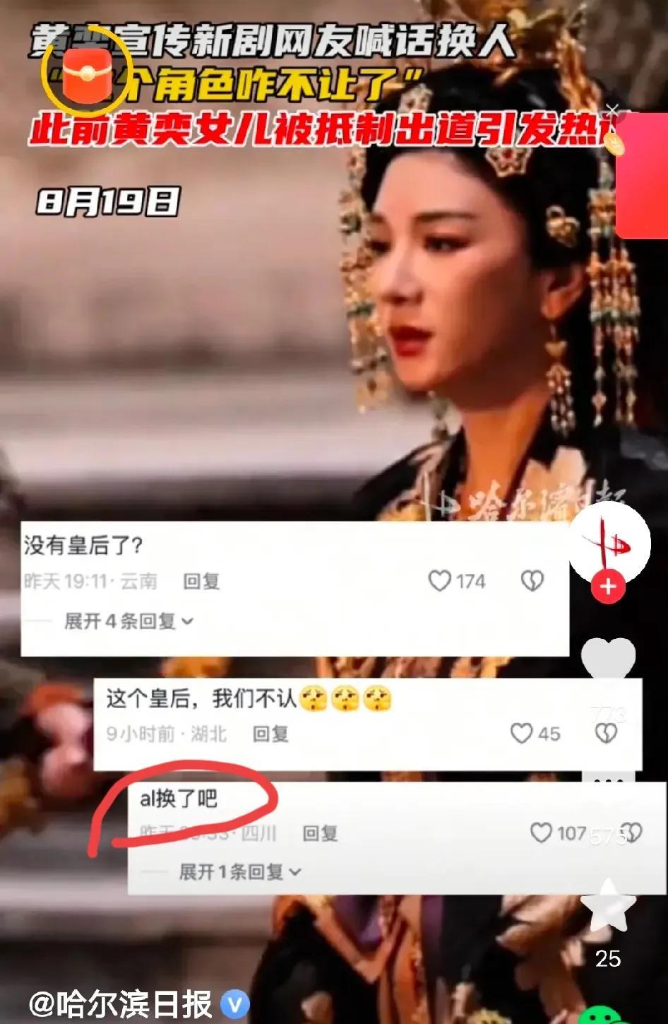 把大家的宽容当做好欺负,黄奕饰演的皇后娘娘被抵制,这才是她自食恶果的开始…… 大家从一开始就知道黄毅清的鬼样子,但并没有人用这件事说黄奕母女俩。这次也是因为黄奕帮着女儿吃娱乐圈这碗饭,这才让这件事发酵起来。 事儿本身不算大,大部分人也都是口下留情保护小姑娘的,但偏偏黄奕在直播时一副高高在上的样子,不仅不领情,还说战斗在一线的英雄跟自己没有关系。 这就是立场问题了!大家怎么可能忍她! 只是可惜了田曦薇和许凯的《子夜归》,不知道导演会不会考虑广大网友的呼声,用AI换脸把黄奕换掉。