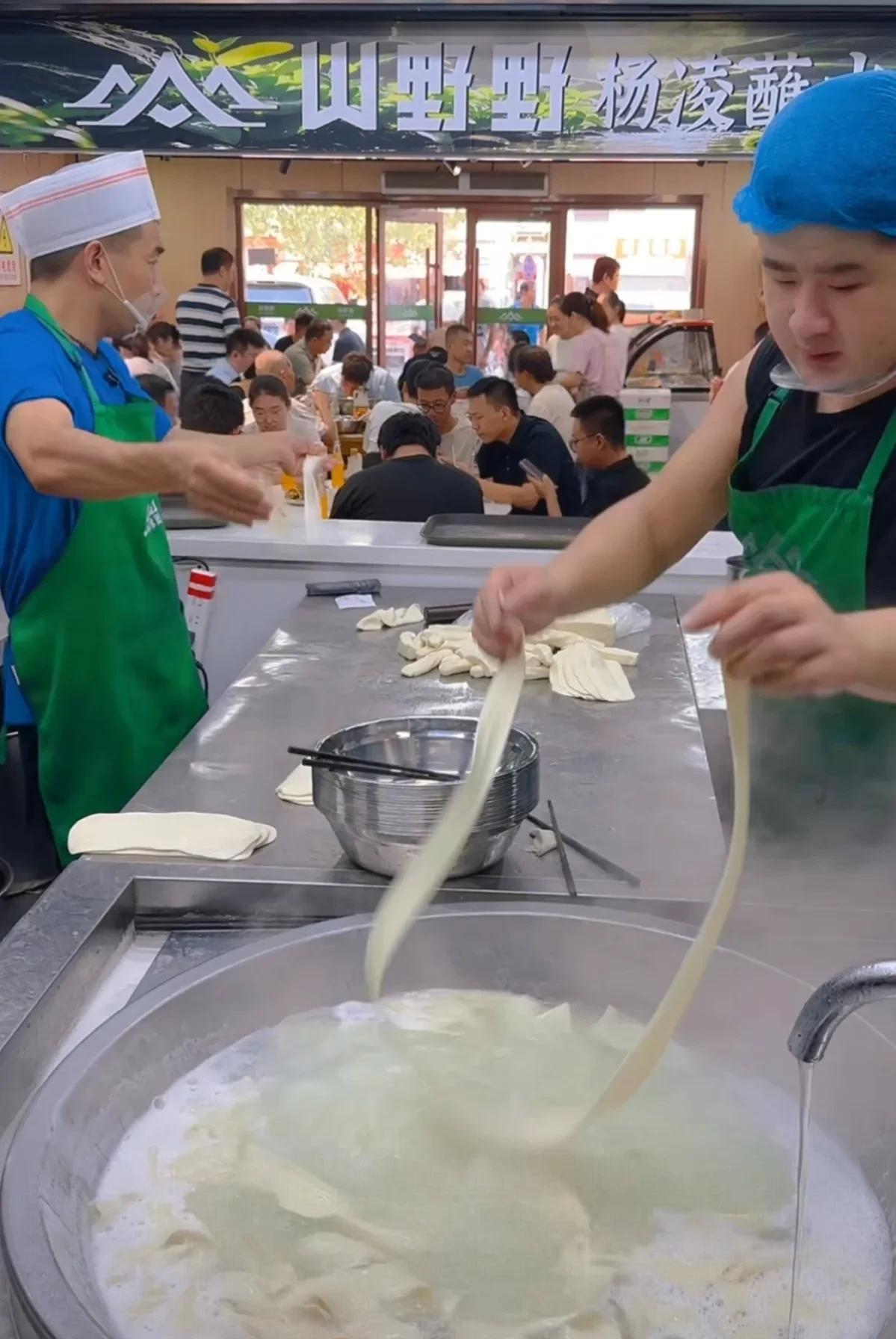 西安有一家嘎嘎好吃的蘸水面。 这家面馆在浐灞,是一个姓杨的老板开的,每到饭点,座无虚席,稍微去晚就没座位了,东郊这一片应该很多人都知道。 他的店里做面的师傅是清一色的男人,揉面,做面剂子,扯面,煮面一条龙,各司其职,端面,捡碗和收银的是女服务员,蘸水面一律用不锈钢盆装,白白宽宽的面条像裤带一样,另外还有绿油油的青菜,配着西红柿鸡蛋和辣椒面,白芝麻制作的卤汁,汁子又酸又香,搭配劲道的面条,吃起来格外带劲。