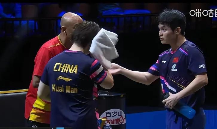 动漫组合对阵考夫曼组合时,决胜局肖战指导这个暂停,太给力了,回来后就连续拿分,赢下比赛。 听到现场收音,肖战指导说对方怎样,然后让他们自己说怎么做。 两个人也讨论了技战术。 这种启发式的指导真厉害,让他们去思考。 只是两个人还是默契不够啊。 看看莎头局间或者暂停时的样子,一直在沟通啊。 #夏日生活打卡季#