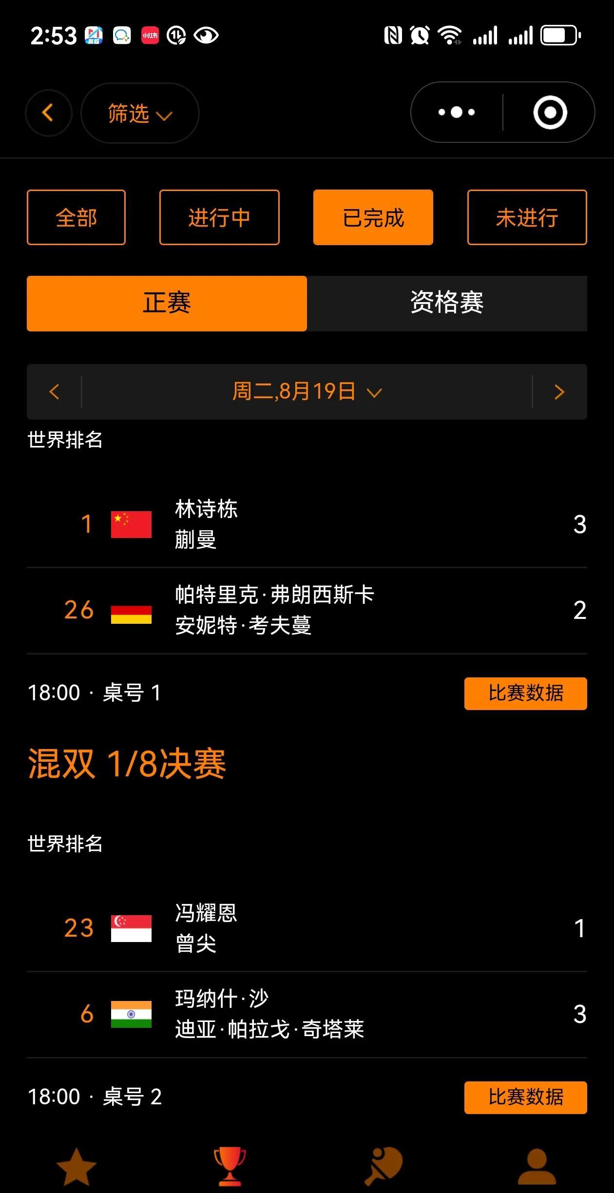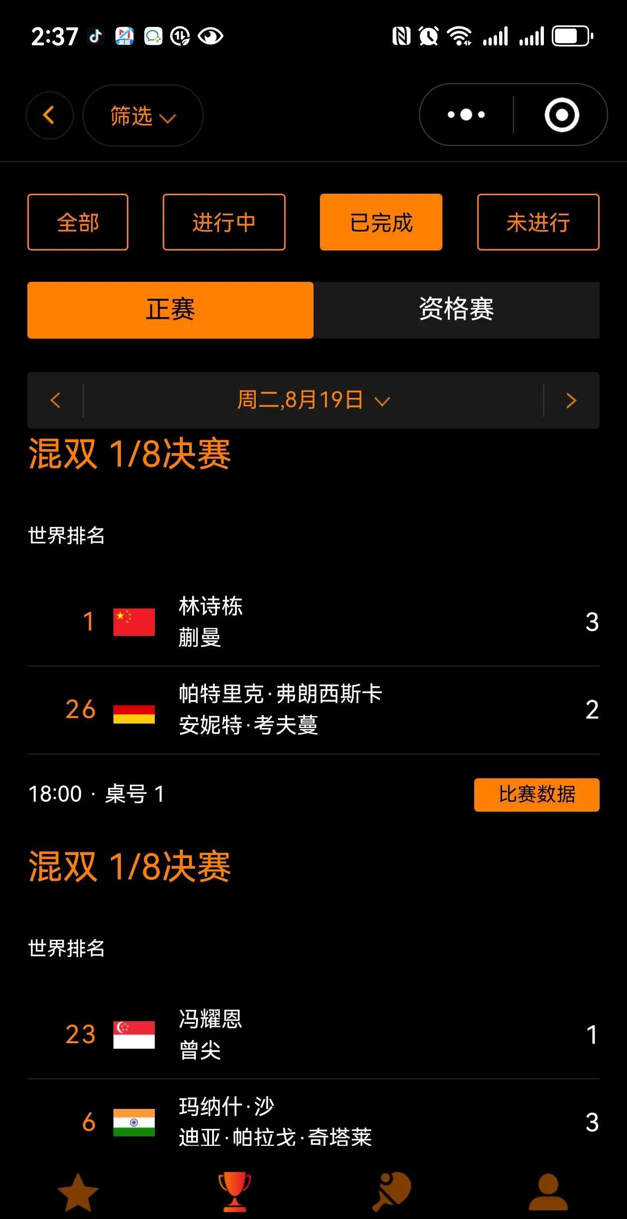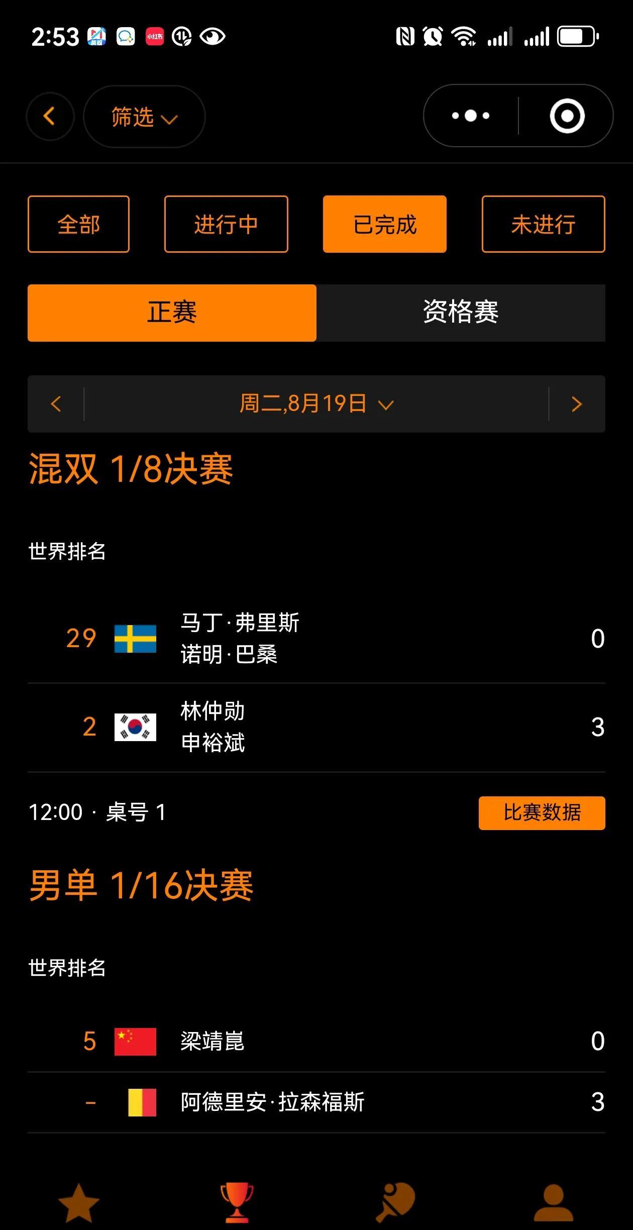 WTT欧洲大满贯瑞典站(8.14-24)当地19日晚场,王曼昱3:0迪亚兹,王艺迪3:0曾尖,梁靖崑/温瑞博3:0林文政/卢伟,晋级16强。林诗栋/蒯曼3:2小弗/考夫曼,晋级八强。 #瑞典wtt#