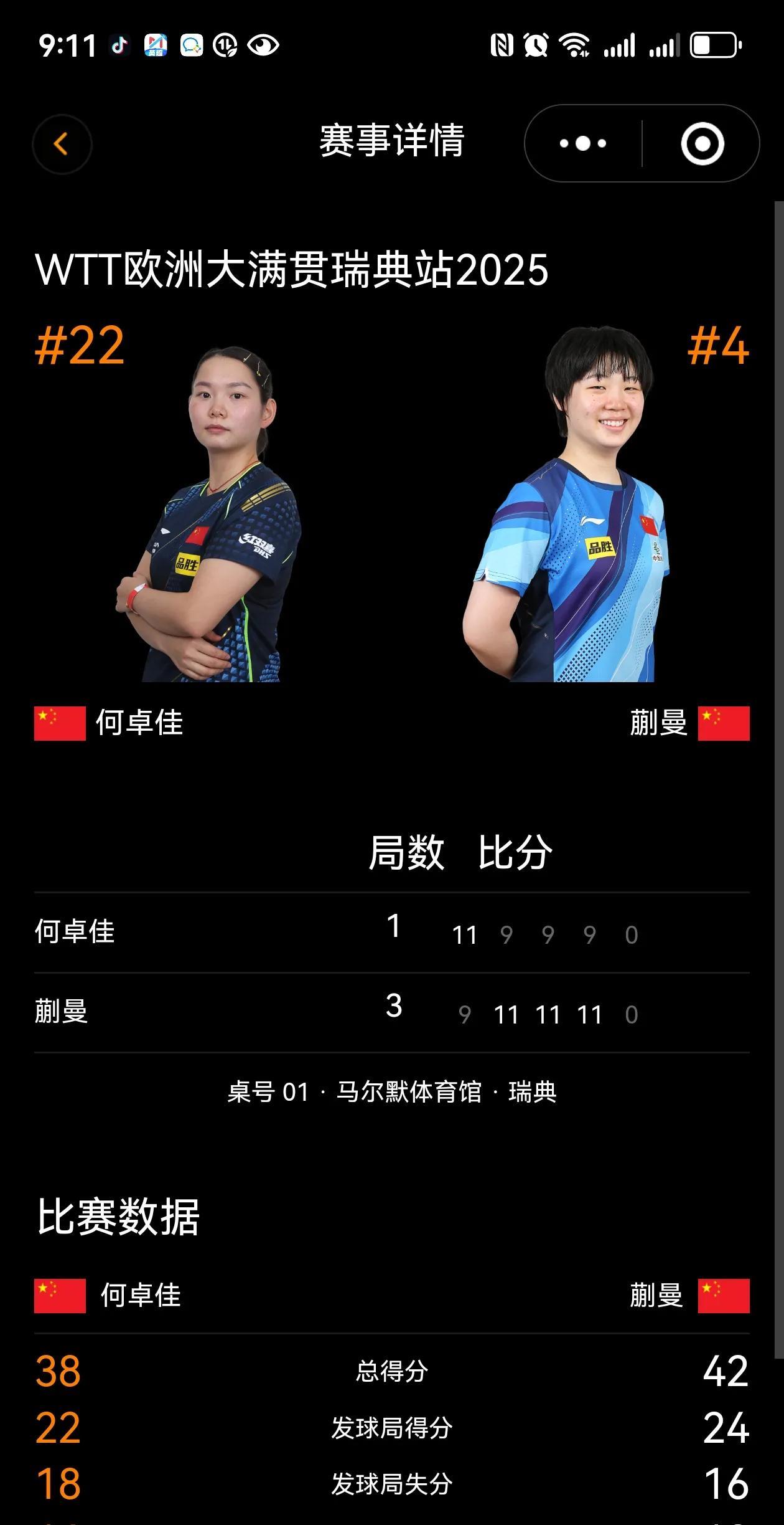 WTT欧洲大满贯瑞典站(8.14-24)1/16赛1,19日午场,国乒选手石洵瑶3:0黄怡桦、蒯曼3:1何卓佳,林诗栋3:0阿萨尔,晋级16强。 梁靖崑0:3拉森福斯,钱天一0:3削球手桥本帆乃香,何卓佳无缘16强。#何卓佳蒯曼# 关注评论区,附录后续比赛日程。