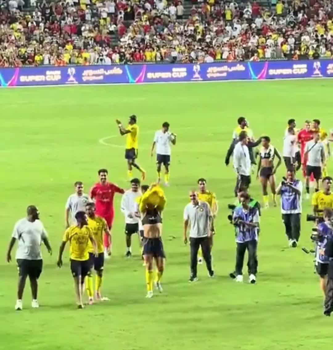 C罗香港行,踢91分钟,谢场+送球衣! 梅西香港行,踢0分钟,静坐+不互动! 利雅得胜利2-1吉达联合,C罗在球队少踢1人的逆境中,无私助攻菲利克斯打进致胜1球,且一直踢到第91分钟才被替换下场,受到全场球迷的鼓掌致敬,赛后,他还带领队员谢场,并送上球衣! 对比梅西香港行,球王因伤病不能上场,静坐90分钟,赛后又没与球迷互动,引起球迷不满,受到嘘声! 实际上,梅罗的香港行没有可比性,一个是商业赛,梅西没有一定要出场的义务,他身体不适,完全可以不踢;另一个是正式比赛,C罗必然首发,这个没得说。 总之,C罗和梅西不管踢还是不踢,对球迷都很尊重,他们都是值得尊重巨星!