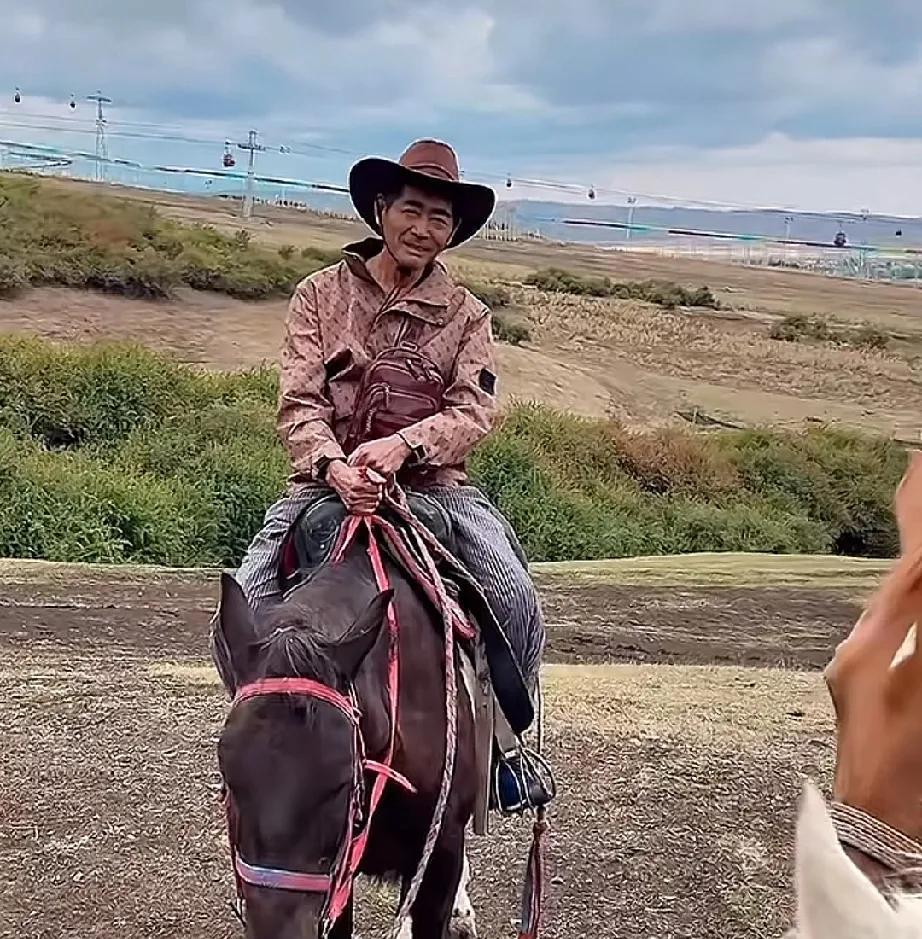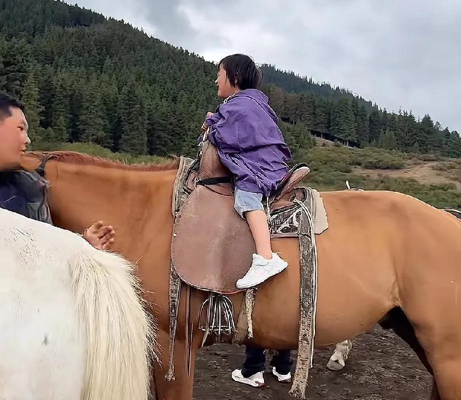 玉酱一家来新疆草原骑马开心极了,喜娜酱一个留在马背吓哭了。 山口虽然瘦,但很精神,牛仔帽戴上象西部大片主角。他人也善,完了还掏出百元大钞给马主人,希望给马儿好食料。