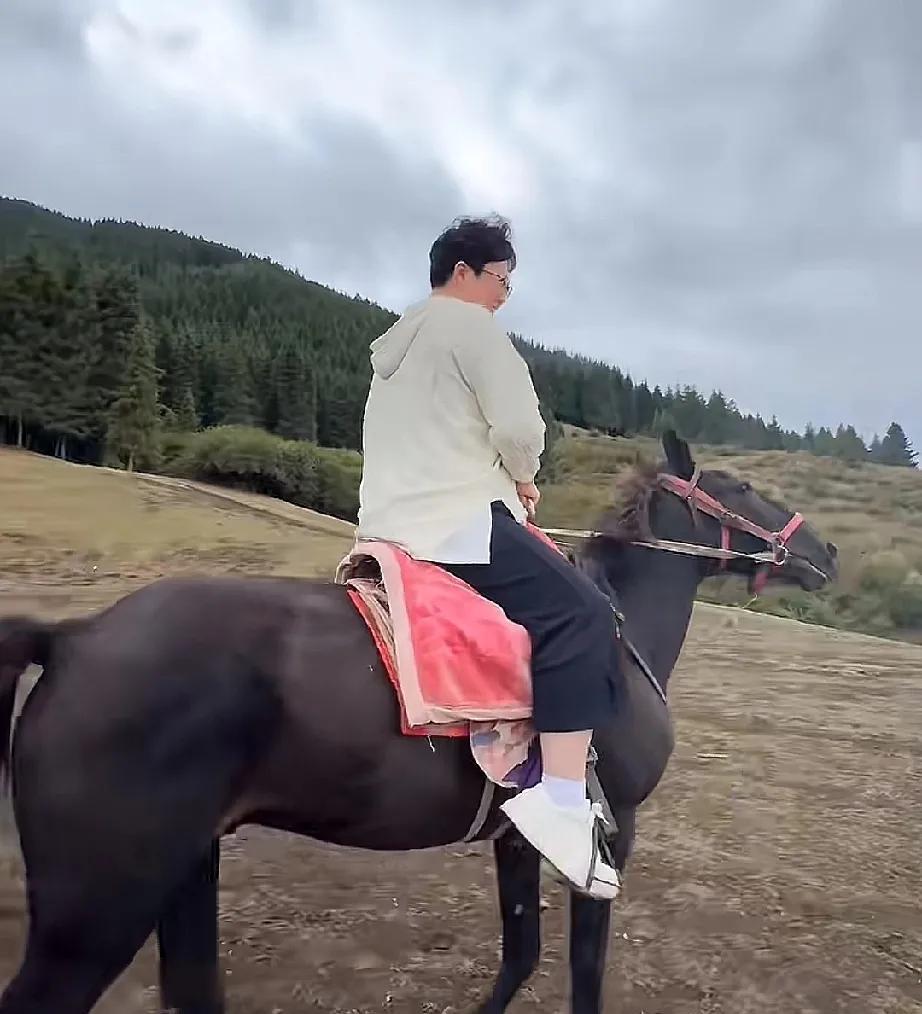 玉酱一家来新疆草原骑马开心极了,喜娜酱一个留在马背吓哭了。 山口虽然瘦,但很精神